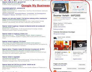 Nehmen wir als Such-Beispiel den Verleihservice Beamer Verleih – MIP2000 in Augsburg.